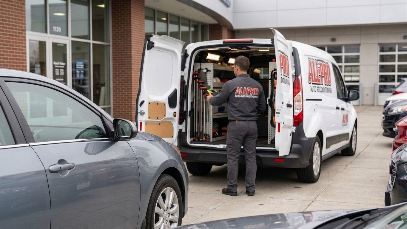 Paintless dent removal on dealer inventory — no repainting, no color match issues.